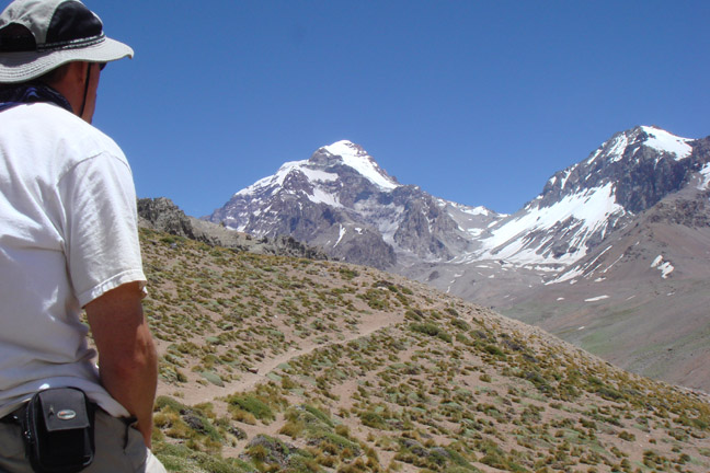 Getting closer to base camp. Aconcagua (left) and Ameghino (right).