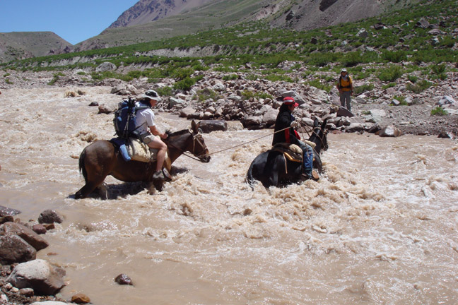 Jason crossing by mule. The muleteer carried our packs after a fellow from a different group tumbled into the river shortly afterward.