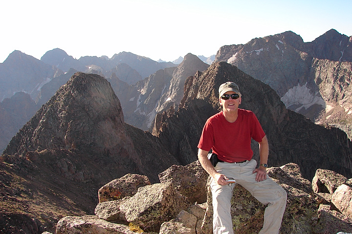 Animas' summit with Peak 13 (left) and Monitor Peak (straight behind Tim).