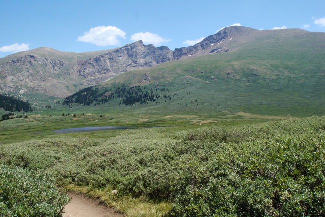 Mt Bierstadt, upper right and the Sawtooth ridge.