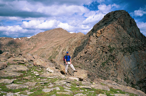 Point 13641- we followed the grassy ledge on the right with the dramatic exposure.
