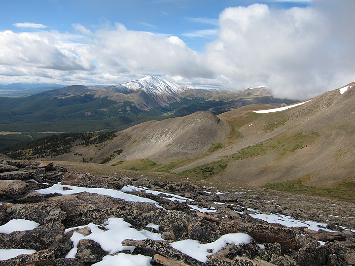 Clearing skies revealed a layering of snow on Quandary Peak.