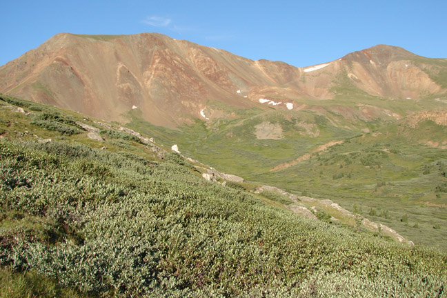Willows blanket the basin east of Carbonate Mtn (left) & Cyclone Mtn (right).