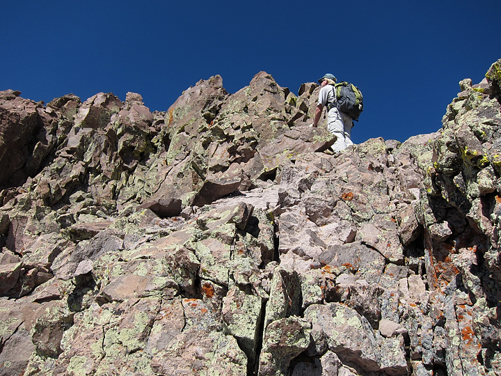 From here we followed cairns on the back side (right).