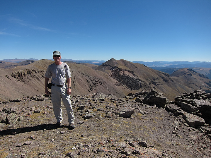 Tim on the summit of 13580. UN 13581's summit block is seen in background,center.