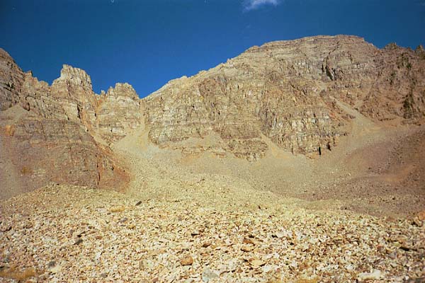 The gully we ascended is to the right of the lower tower on the ridge. It's as steep as it looks.