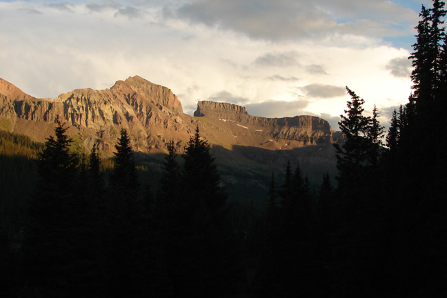 Evening light on Coxcomb Peak, the flat peak in the center.