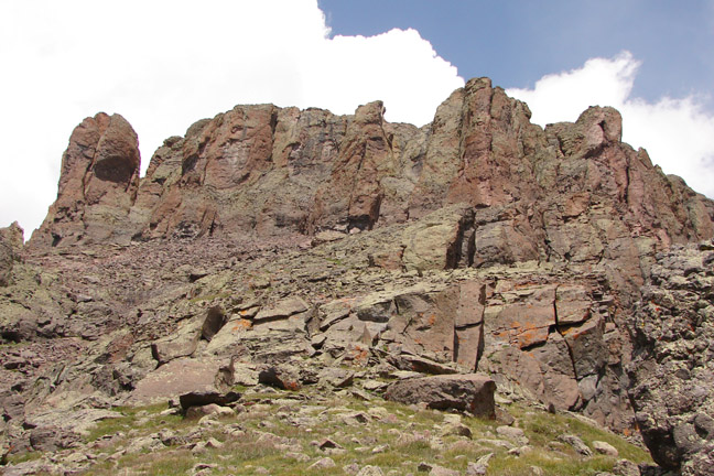 The entrance to the chimney is right of the smaller protruding square block, upper center.