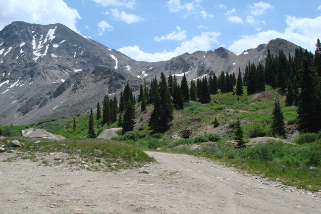 From the 4x4 parking area: Villa Ridge on the right, Drift Peak upper left (the right summit is the higher one).