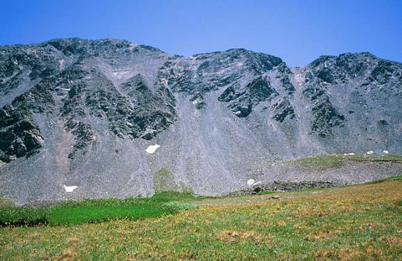 Mt Edwards is the high point on left ridge, the descent gully is on right side of photo.