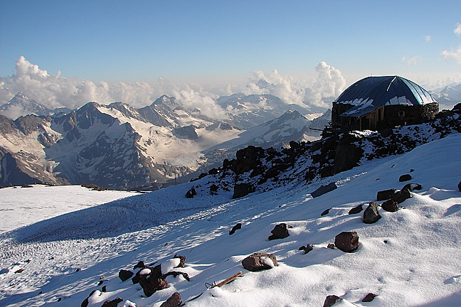 The Diesel Hut at 13,300 feet and the Caucasus range.