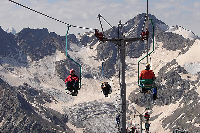 A clear view of the Caucasus and a few of the many glaciers in the area.