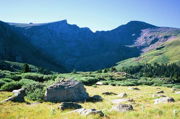 Early morning light on the Sawtooth with Mt Bierstadt on the right.