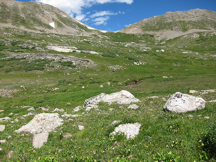 I exited the trail here and followed easy, grassy terrain to the saddle.
