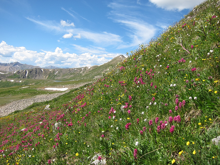 Wildflowers still in bloom on the descent to Independence Lake.