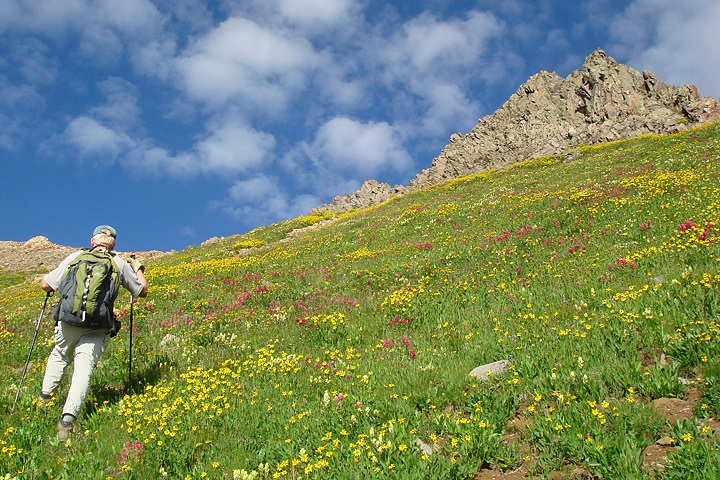 Gilpin's colorful slopes below the saddle.