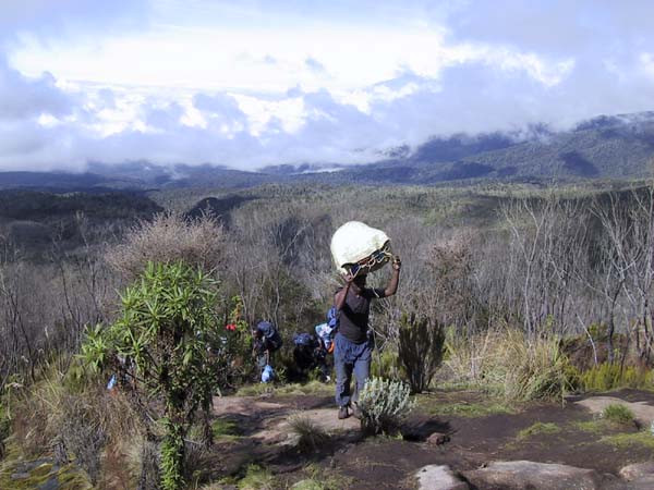 Porters from a different group, shortly after departing Machame camp.