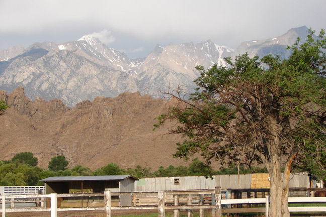 Mt Langely is the highest peak on the left with a cloud wisping off the top. Taken from the town of Lone Pine, California.