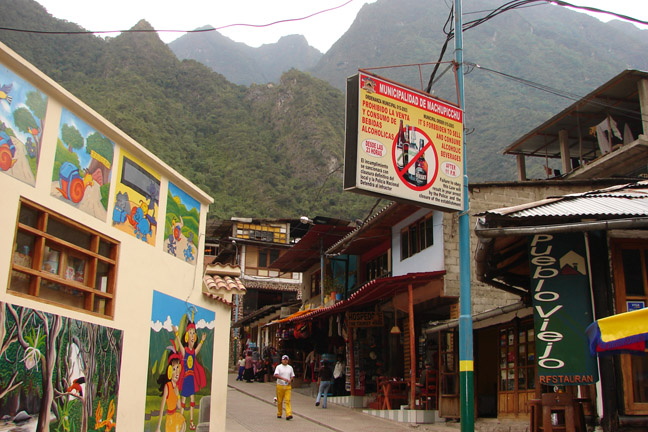 The town of Aguas Calientes sits well below Machu Picchu.