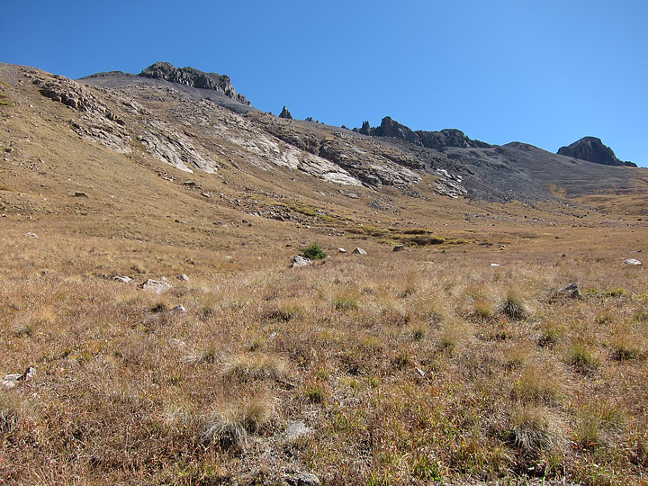 The flat meadow below Quarter Peak, upper left.