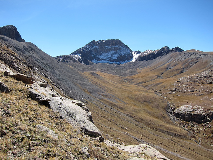 Impressive view of Half Peak from the grassy slopes below Quarter Peak.