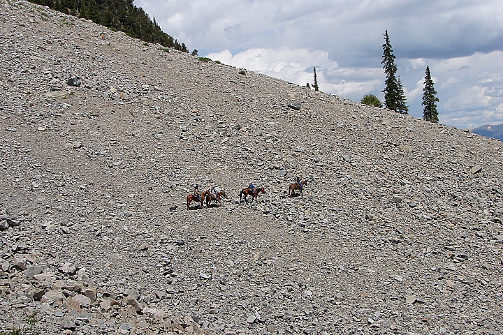 The trail cuts through a large talus slope.