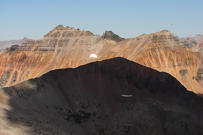 Terrific view of Vermilion Peak (left) and Golden Horn (center) from the summit ridge.