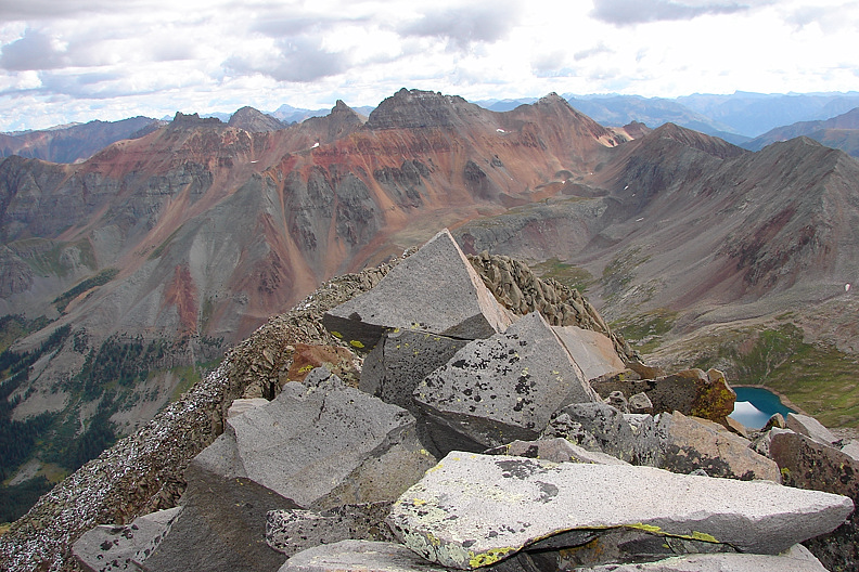 Looking east from San Miguel's summit: (left to right) Pilot Knob, US Grant, Golden Horn, Vermilion Peak, and Fuller Peak