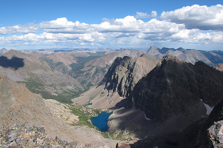 Looking down at Leviathan Lake from the summit of Peak Six.