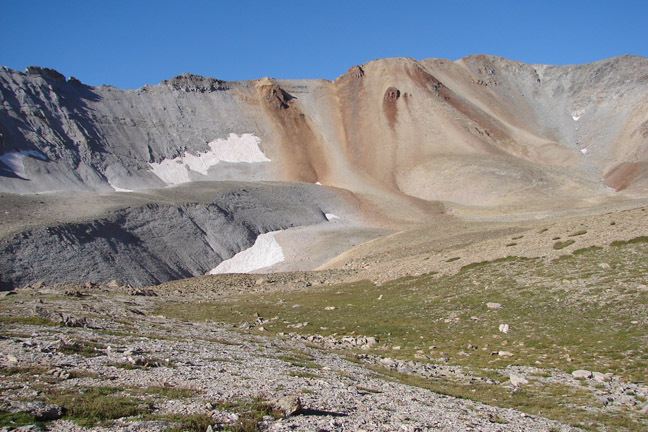 T 0's summit is to the right of the sandy colored slopes.