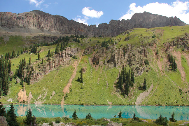 The southwest ridge of Mt Sneffels and Blue Lake below.