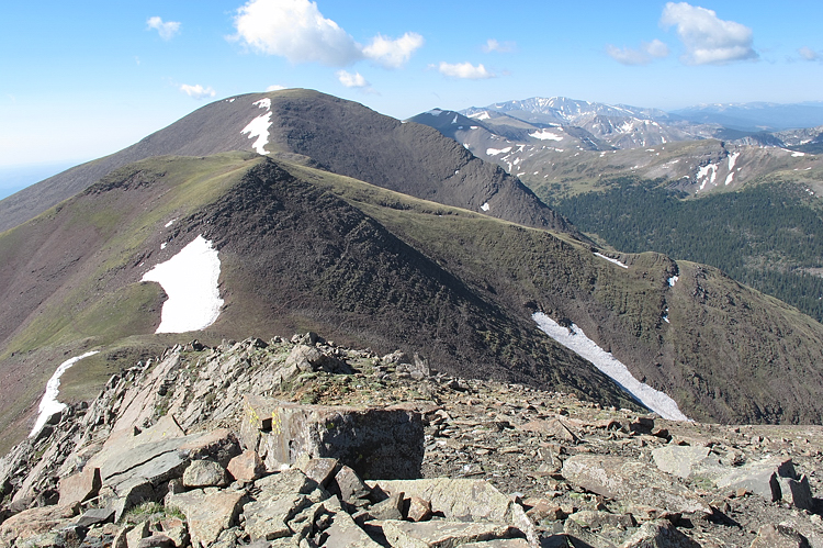 Looking south toward Cuatro Peak, upper left, from the summit of Leaning South Peak.