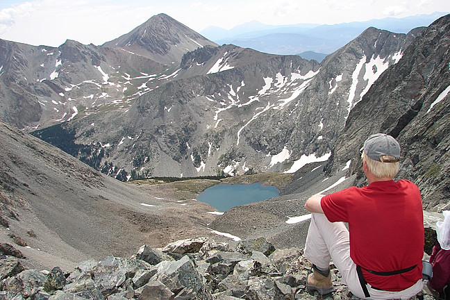 On the summit of UN 13660 with Lily Lake below and Mt Lindsey in background.